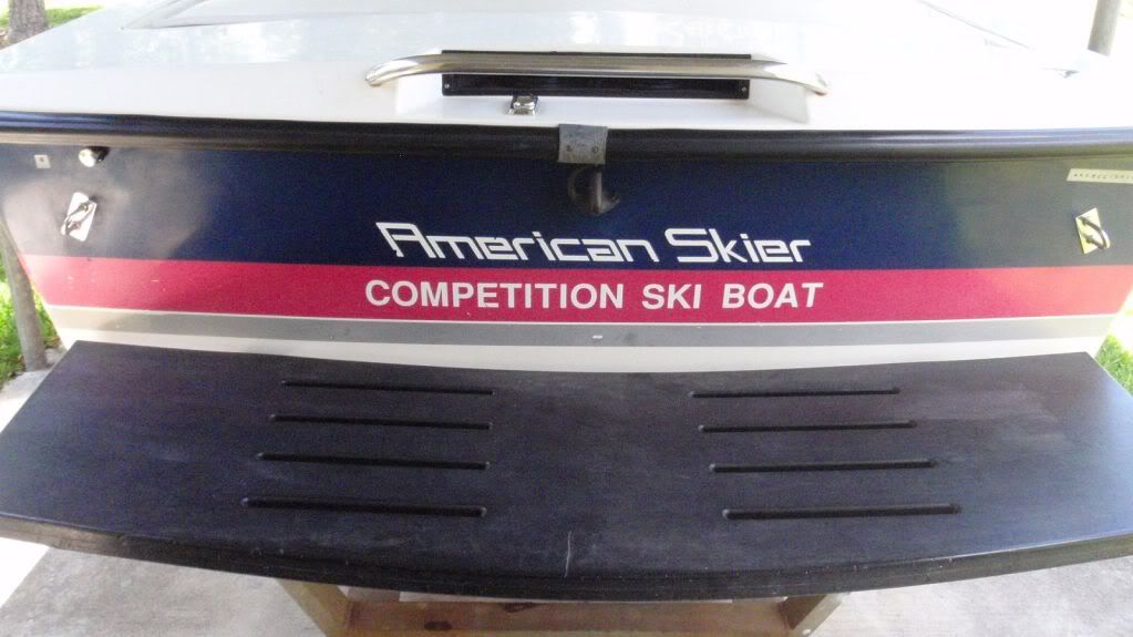 Yeah, that plastic has got to go - if for no other reason than you'll probably break you neck trying to put on a ski...   Now Ron & Dan will accuse me of being a heritic, but a lot of the older inboard boats had the same style teak swim platforms like MC, CC, etc, that MAY fit your boat.  I think mine came off of different boat since there are more than one set of screw holes in the underside where a different set of braces fit it in a previous life.  I'd check around some local marinas / boat storage places or a few other sites to see whats available.   Lots of boats out there sitting in storage...  Ya never know what you'll trip over  :)