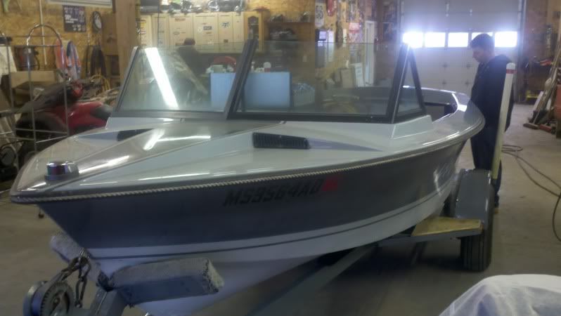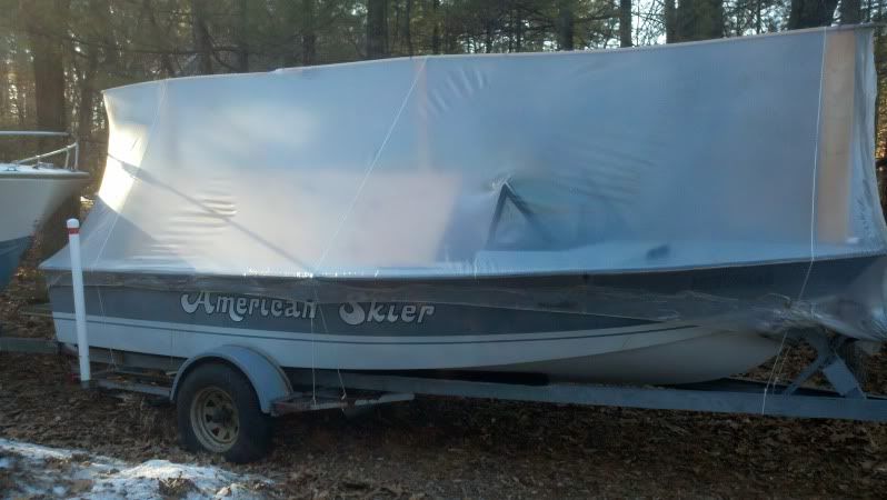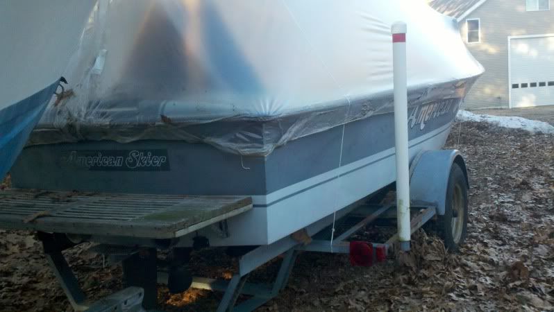 Here's a couple terrible pictures from my phone. I know you guys can't see much with pics of a covered boat but its all I have at the moment. The boat really doesn't look good in these pictures but believe me when I say it, the boat is in really good shape for the year considering all things.